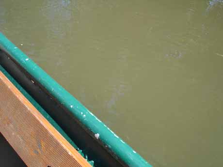 Dann kommen wir zu dem Punkt, an dem die “Blinde Elz” auf die “Alte Elz” trifft. Sehr deutlich sind an der Stelle die unterschiedlichen Gewässer zu sehen. Links des Bootes die “Blinde Elz”, die blau-grünlich schimmert, rechts des Bootes die “Alte Elz”, deren Wasser bräunlicher ist. Die Färbung der “Blinden Elz” kommt natürlich von den vielen Quellen.