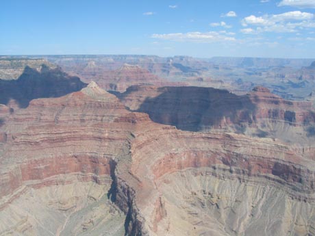 …und schließlich überflogen wir die Klippe und uns bot sich ein eimaliger Anblick. Majestätisch liegt der Grand Canyon unter/neben einem mit seinen bizarren, unterschiedlich gefärbten Gesteinsformationen, elegant schlängelt sich der Colorado River durch die Felsen.