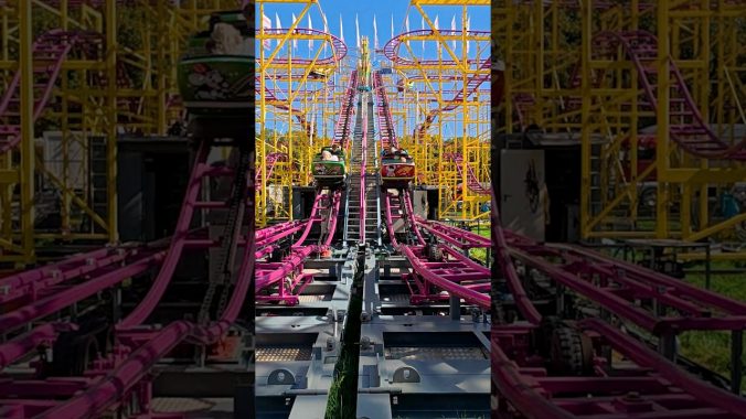 Wilde Maus Doppelanlage von MĂŒnch auf dem Oktoberfest MĂŒnchen 2025. Achterbahn Doppelanlage. Achterbahn Wilde Maus auf dem grĂ¶ĂŸten Volksfest der Welt, dem Oktoberfest in MĂŒnchen.
