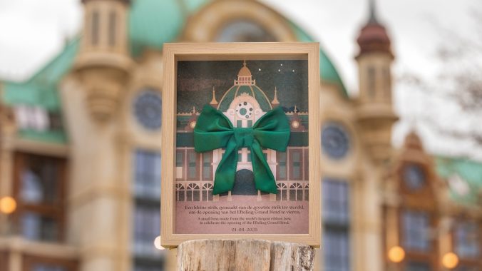 Als das Efteling Grand Hotel in diesem Jahr feierlich eröffnet wurde, setzte der Park mit der größten Schleife der Welt ein eindrucksvolles Zeichen und erhielt dafür einen offiziellen Guinness World Record. Die Schleife war 16,74 Meter breit und 17,15 Meter hoch. Nun erhält die charakteristische, grüne Stoffbahn dieser gigantischen Schleife ein neues, nachhaltiges Kapitel.