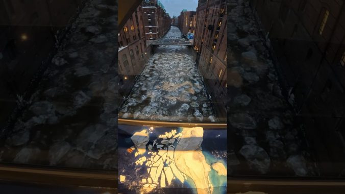 Wonderful view from our Bridge ❤️😜☺️ It’s so cold that we have ice floes in the canal.
