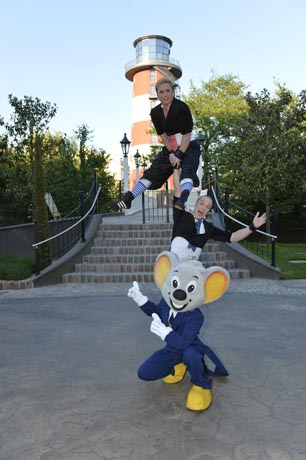 | Das Duo „Alex und Joschi“ mit der Euromaus. Bild: Europa-Park |